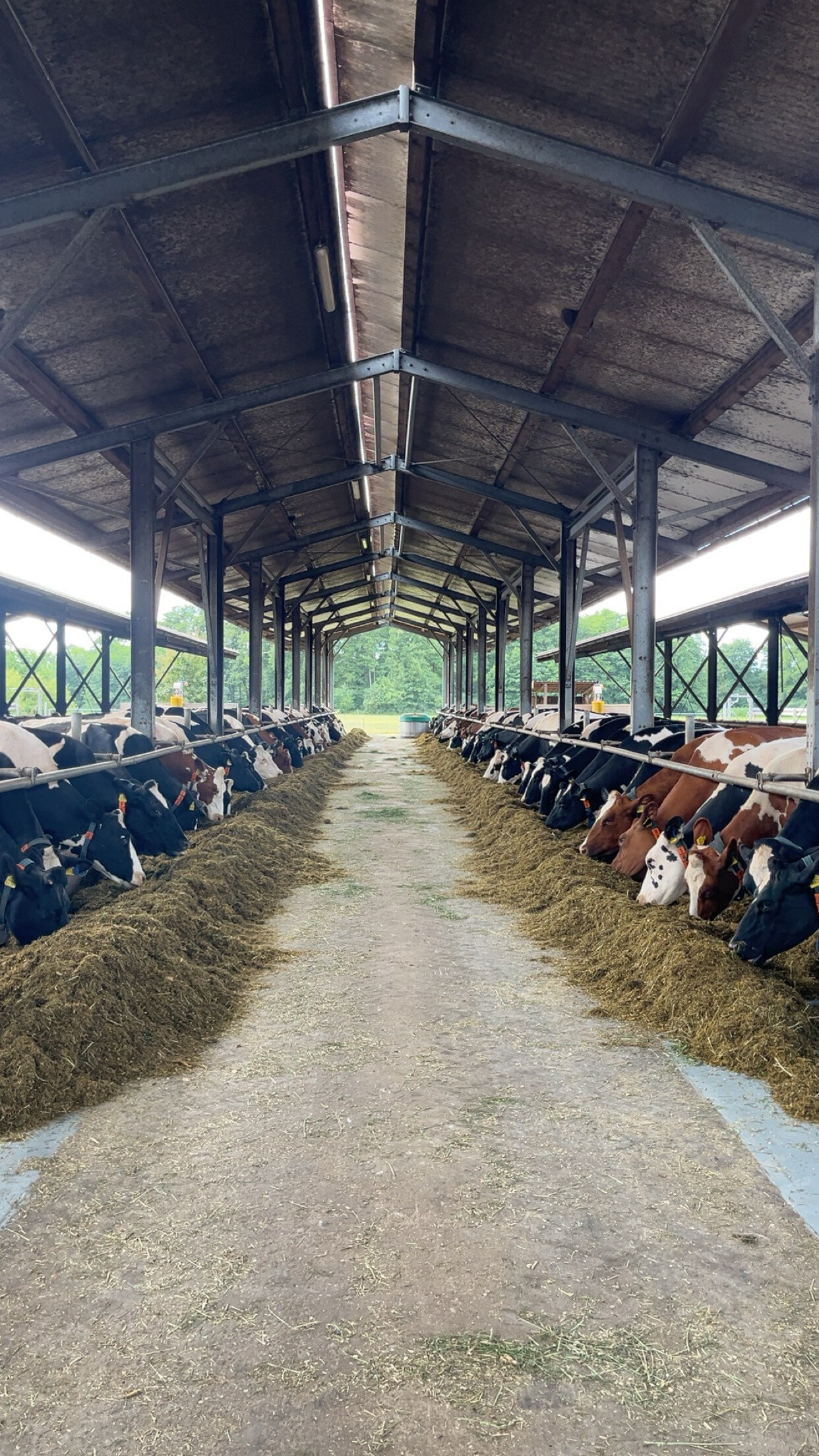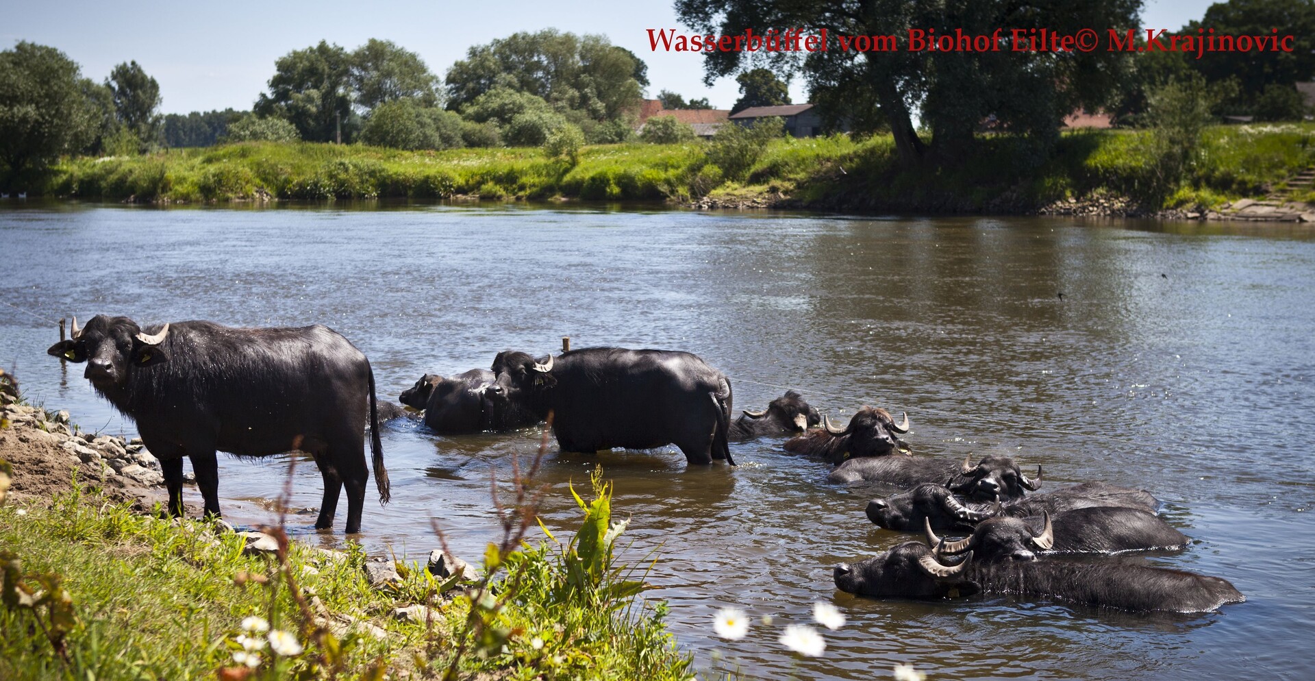 Die aktuelle Milchleistung bei 120 Melkenden liegt im Laktationsschnitt bei 7500kg. Die Kühe erhalten im Sommer freien Weidezugang. Wir haben seit Kurzem eine Ammenkuhherde mit ein bis zwei Kälbern pro Amme und einem Bullen. Das Füttern unserer Milchkühe übernehmen unsere Angestellten. Die Kälber werden morgens und abends von dem Auszubildenden versorgt. Die weiteren Aufgaben sind Zaunbau, Weidekontrolle und diverse Tiertransporte zu den Weiden, da grundsätzlich viele Tiere auf der Weide stehen. So stehen die Wasserbüffelherden ganzjährig auf der Weide.
