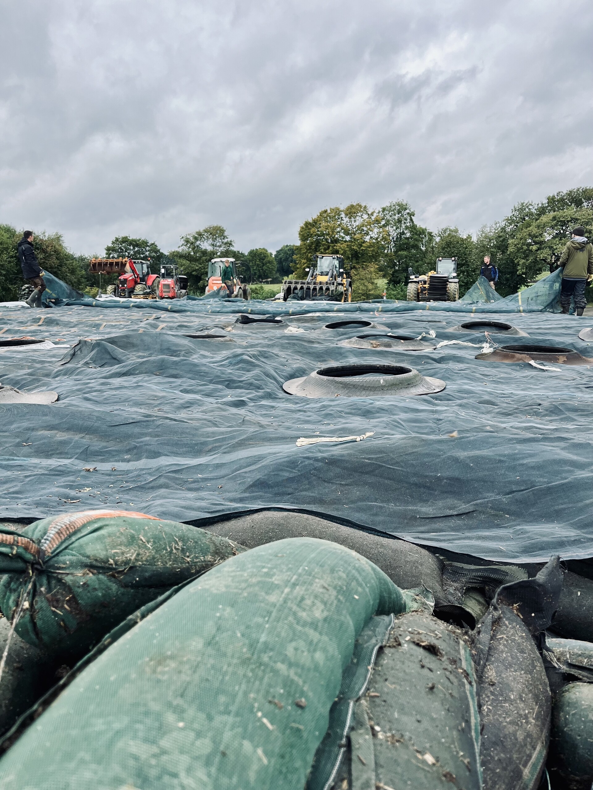 Aber zur Milchviehhaltung gehört schließlich auch der Futterbau und somit ist auch hier ein gewisser Technikbedarf da: In der Vegetationszeit erledigen wir die Frühjahrs-Bodenbearbeitung selber (Pflug, Grubber, Kreiselegge) und unterstützen die Lohnunternehmer bei anfallenden Arbeiten bei der Düngung (zwei Zubringfässer) und Ernte (zwei Häckselwagen). Dafür haben wir drei Ackerschlepper (davon 2x John Deere).