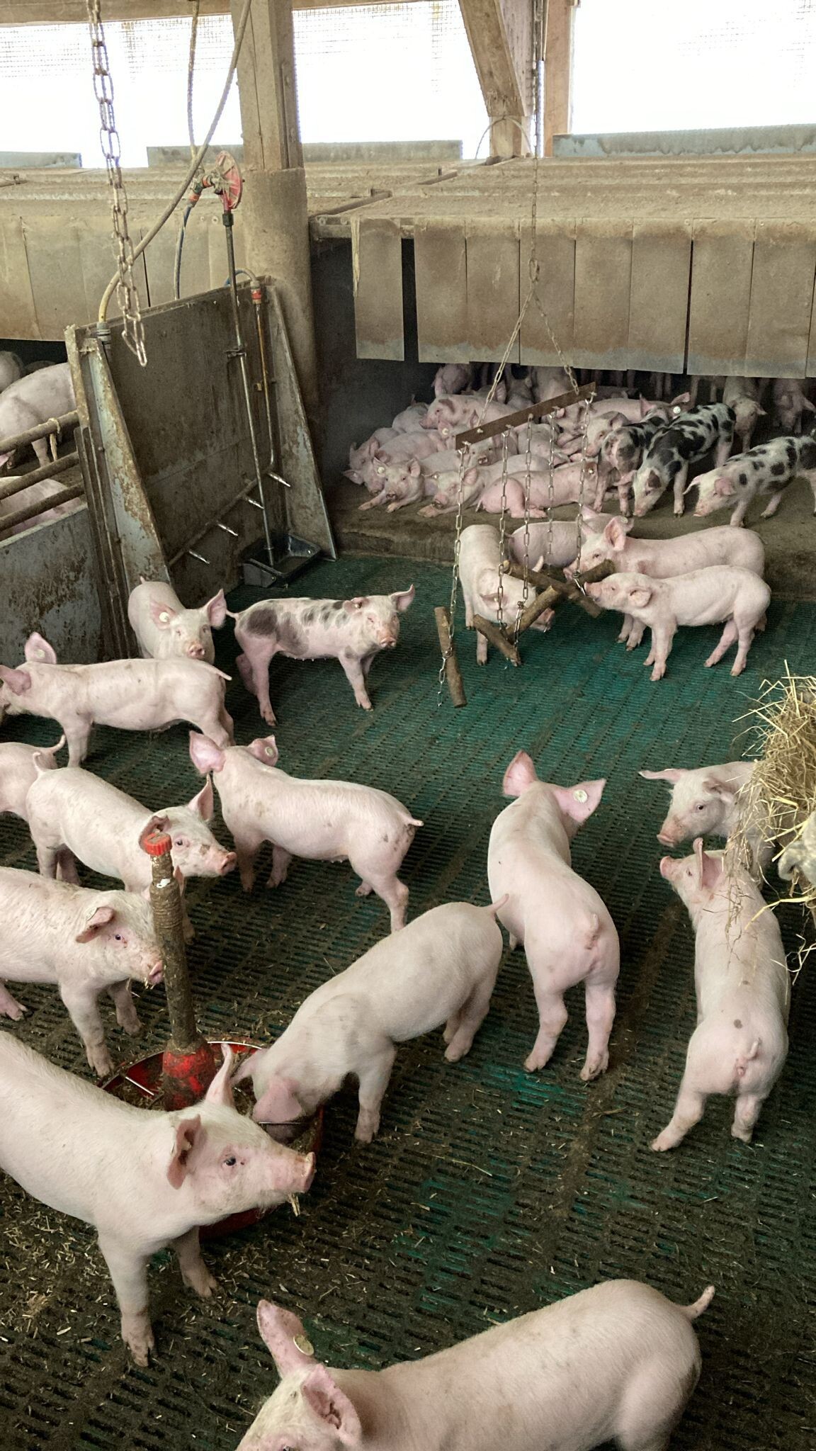 Der Betriebszweig der Schweinehaltung wird in einer KG mit einem Berufskollegen geführt. Die 90 Muttersauen mit entsprechender Aufzucht und Mast werden auf drei Standorten im geschlossenen System gehalten. Der/Die Auszubildene ist je nach Arbeitsspitzen einen Tag in der Woche bei allen Aufgaben rund um die Schweinehaltung mit einbezogen, wodurch wir auch den Bereich „Fortpflanzung“ (Geburt und Aufzucht) nach Ausbildungsrahmenplan ausbilden dürfen.