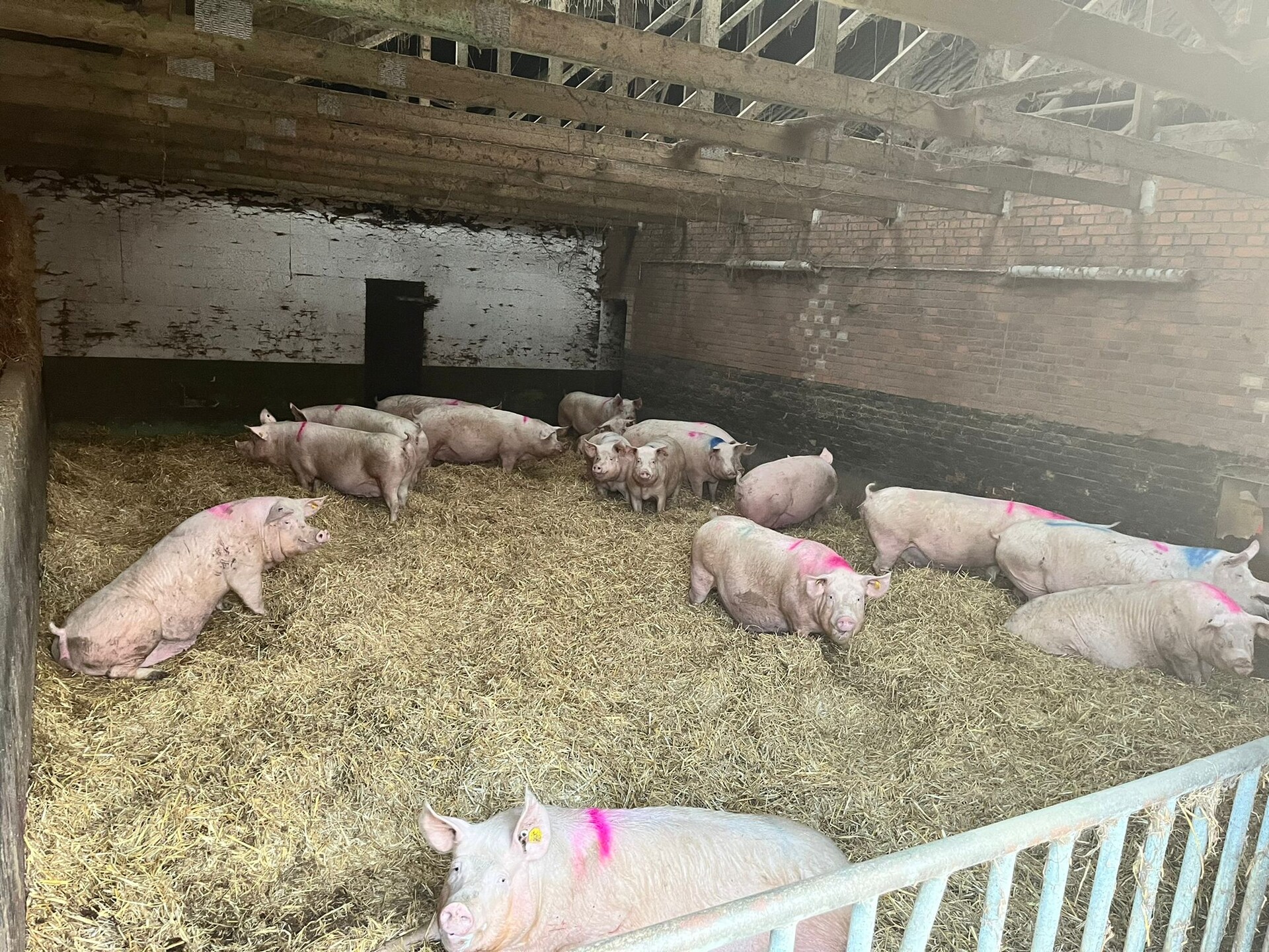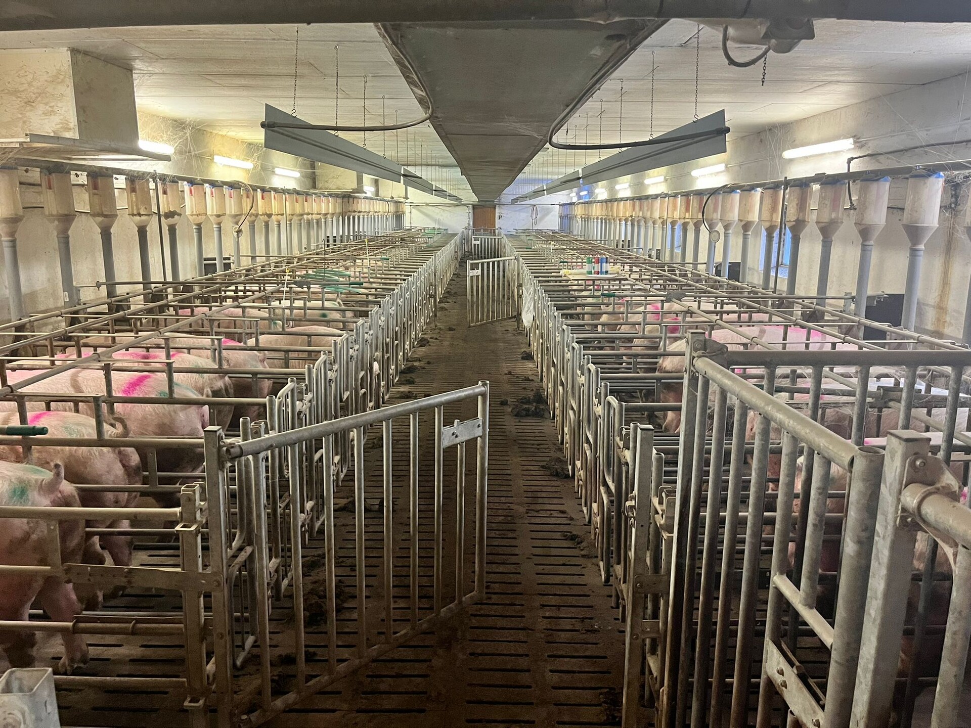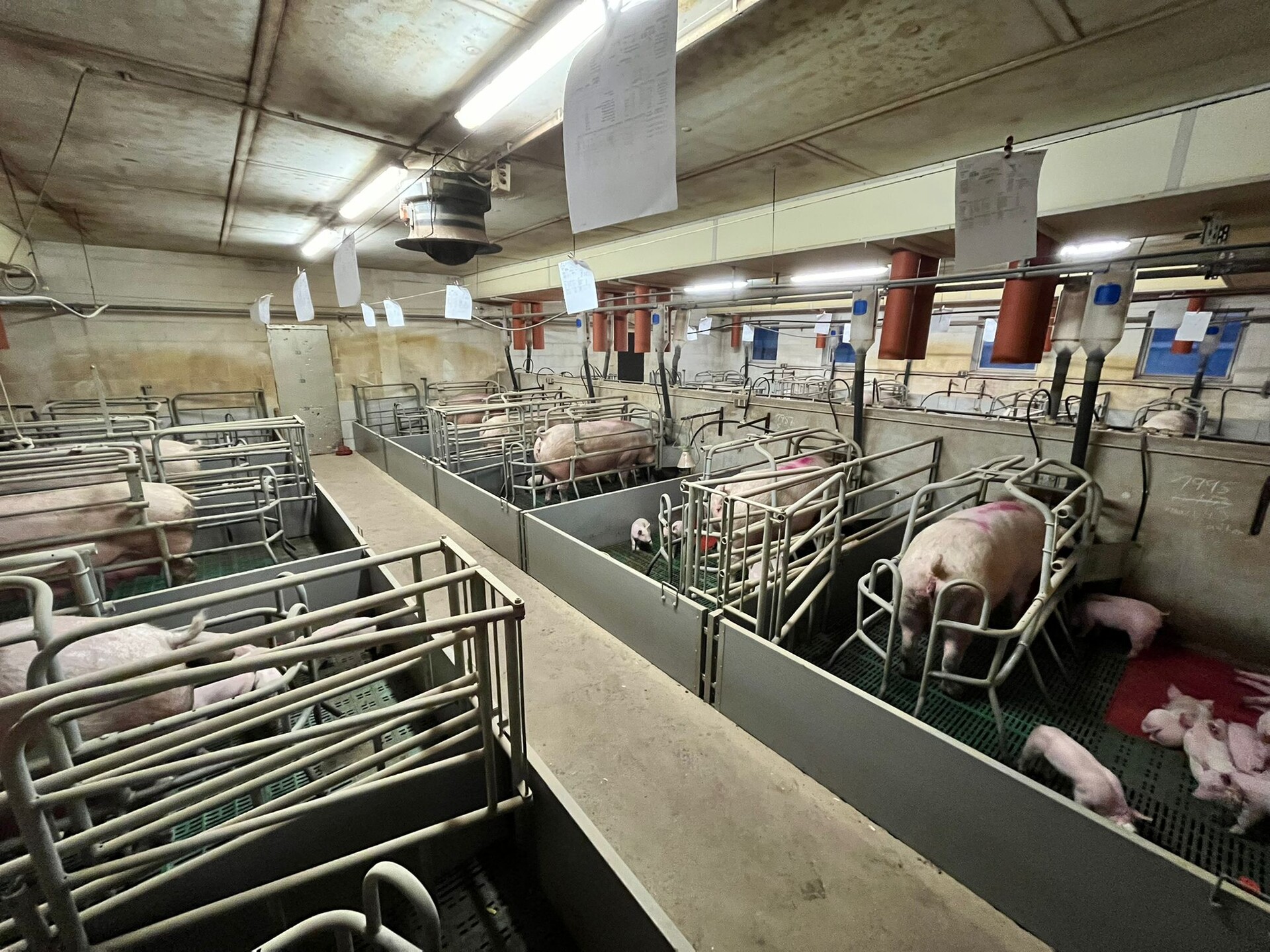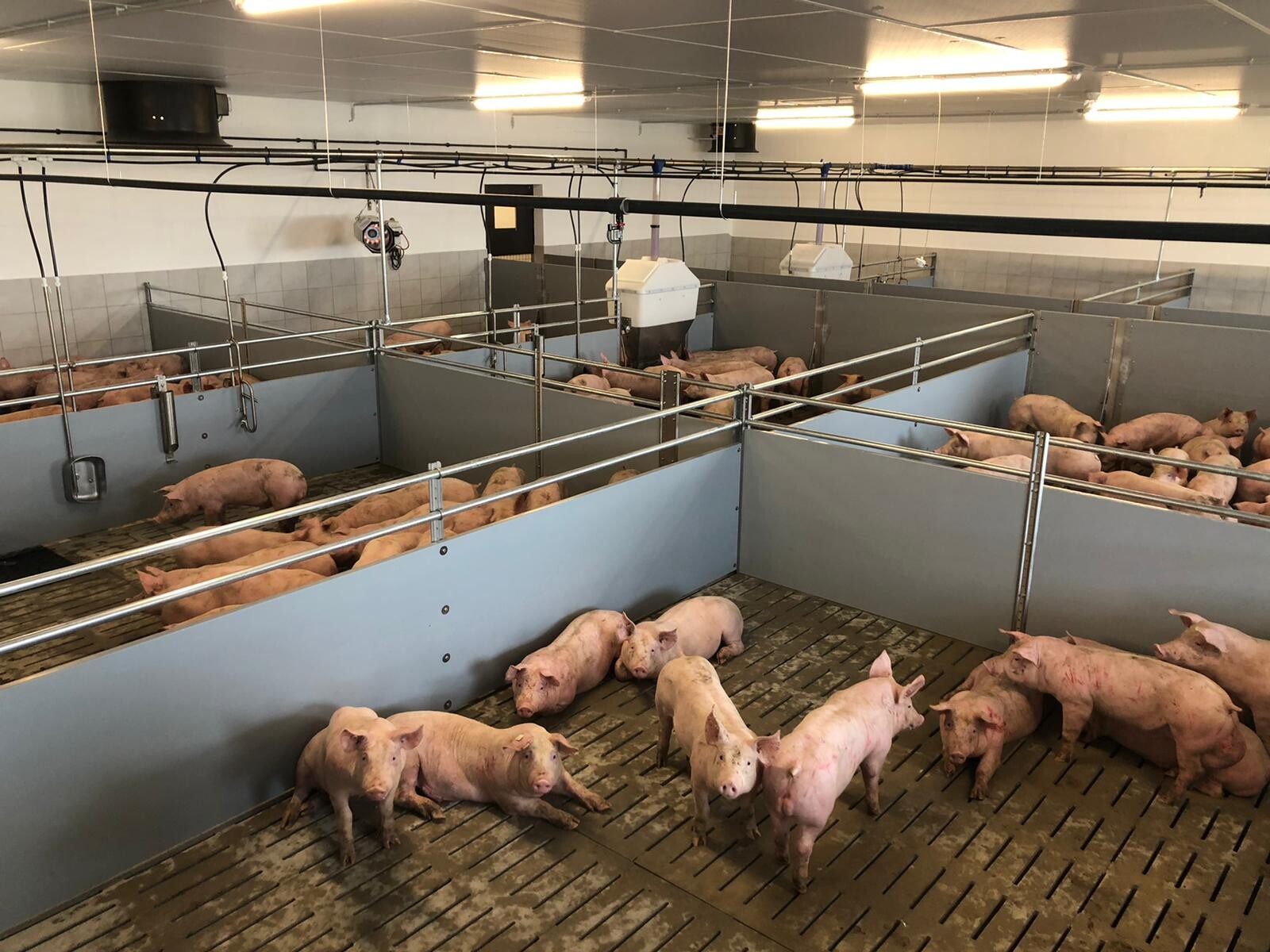 Wir sind ein geschlossener Schweinebetrieb: Unsere rund 300 Sauen, dänische Genetik, werden über eine Trockenfütterung und die Aufzuchtferkel über eine Flüßigfütterung versorgt. Anschließend teilen sich die Mastplätze unter anderem auf außerhalb liegende Pachtställe auf, die mit unterschiedlichsten Fütterungstechniken ausgestattet sind. Von der Sau bis zum Mastschwein werden dementsprechend unterschiedliche, aber vorrangig die heutzutage gängisten Fütterungs- und Lüftungstechniken genutzt.
