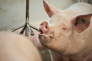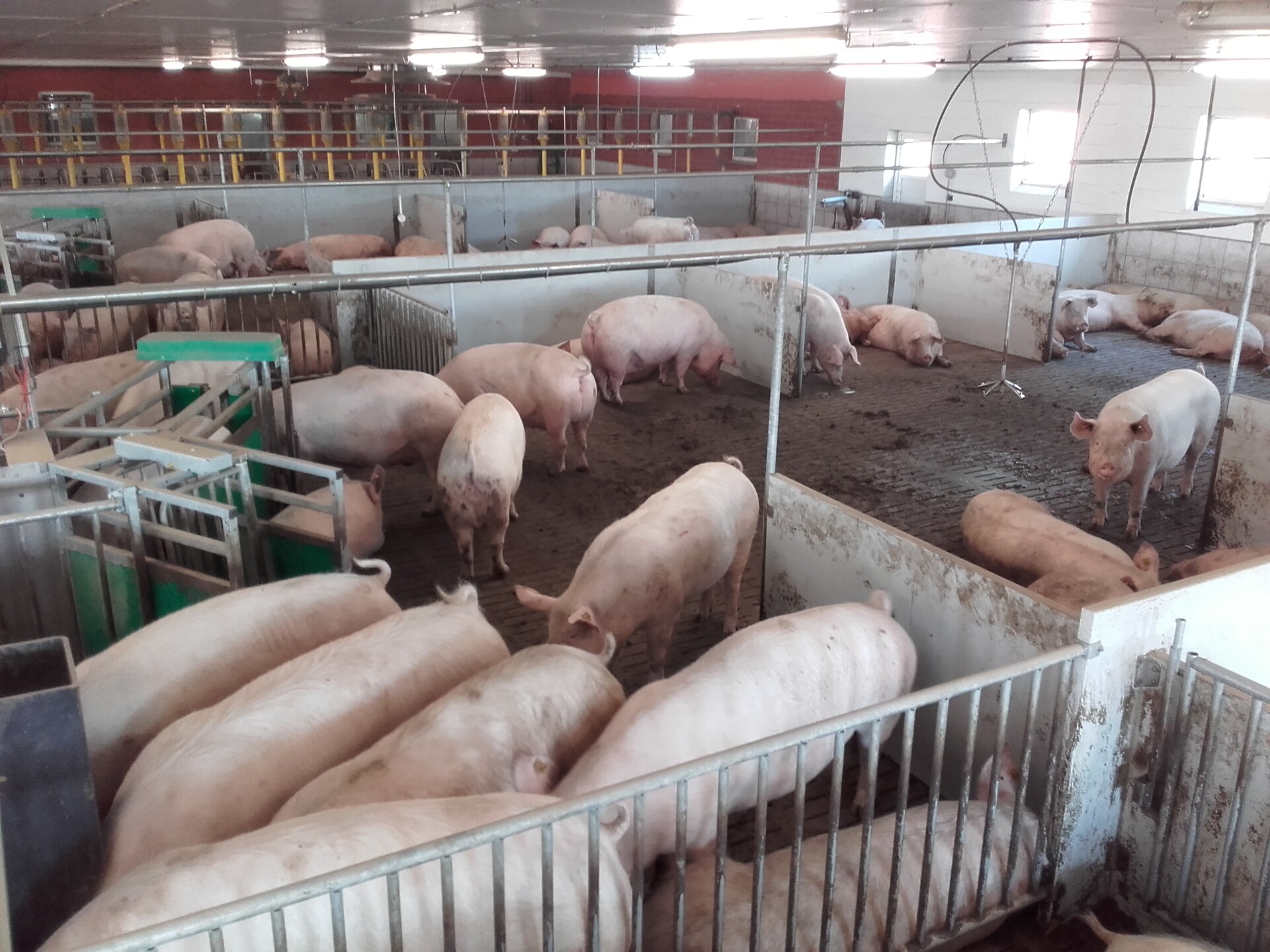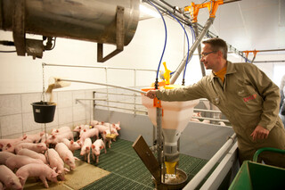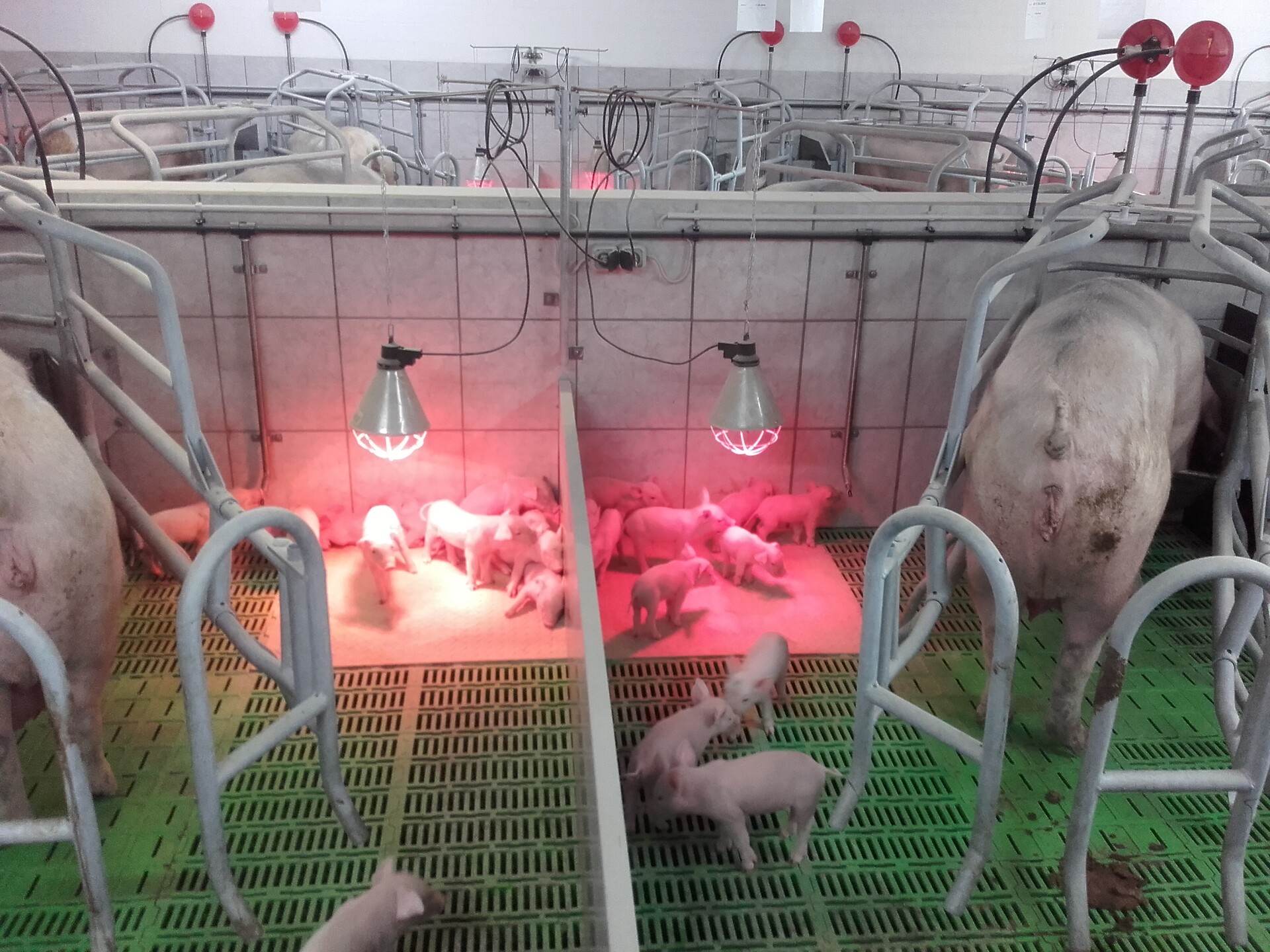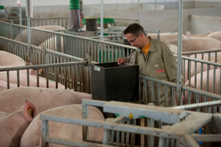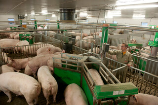 Bei unseren Sauen arbeiten wir mit einer computergesteuerten Abruffütterung. Im Ferkelaufzuchtstall haben wir einen Lüftungscomputer und einen Multiphasenfüttterung (Trockenfutter).