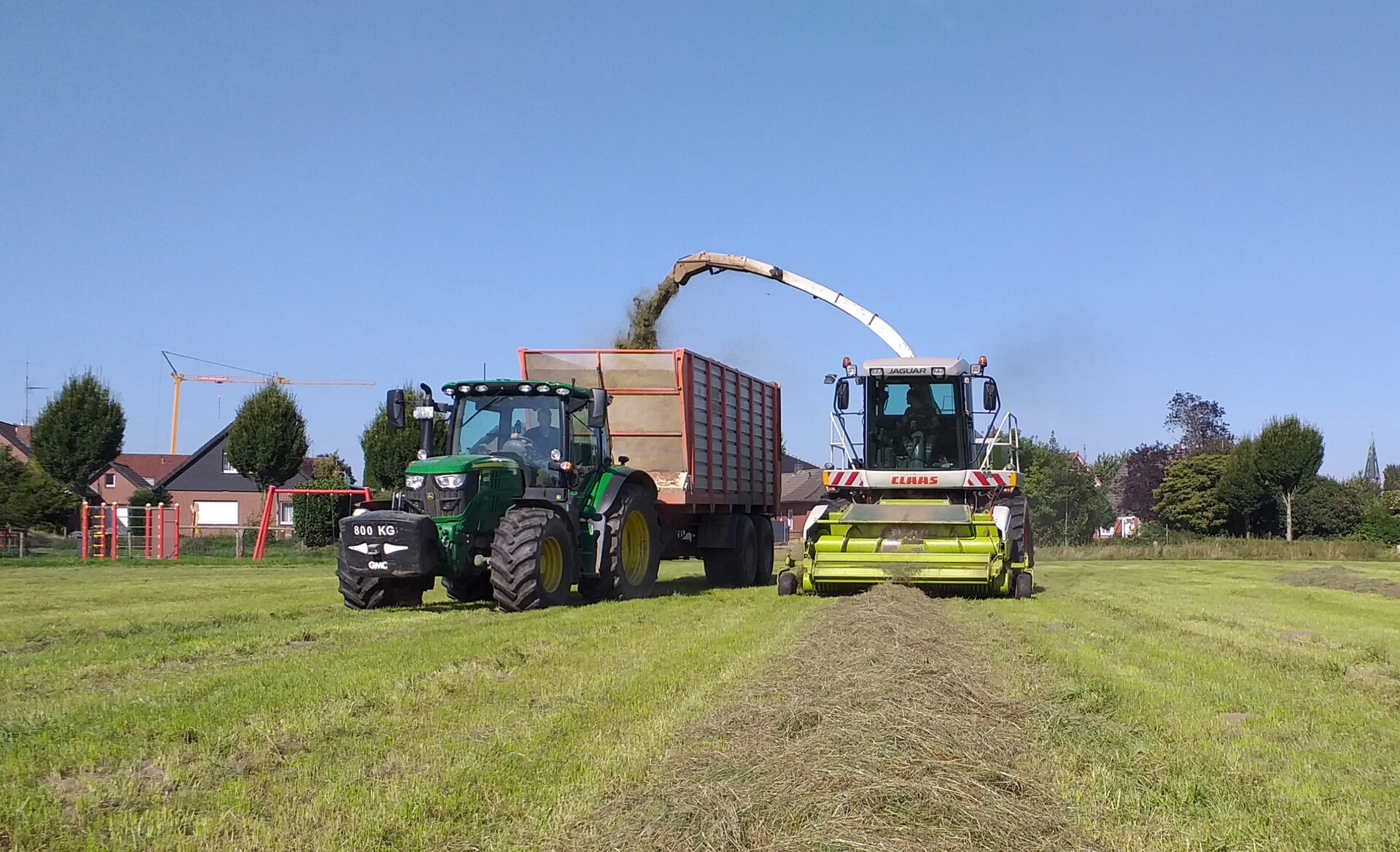 Beim Silieren werden wir vom Lohnunternehmer unterstützt. Er übernimmt das Häckseln und Walzen.
