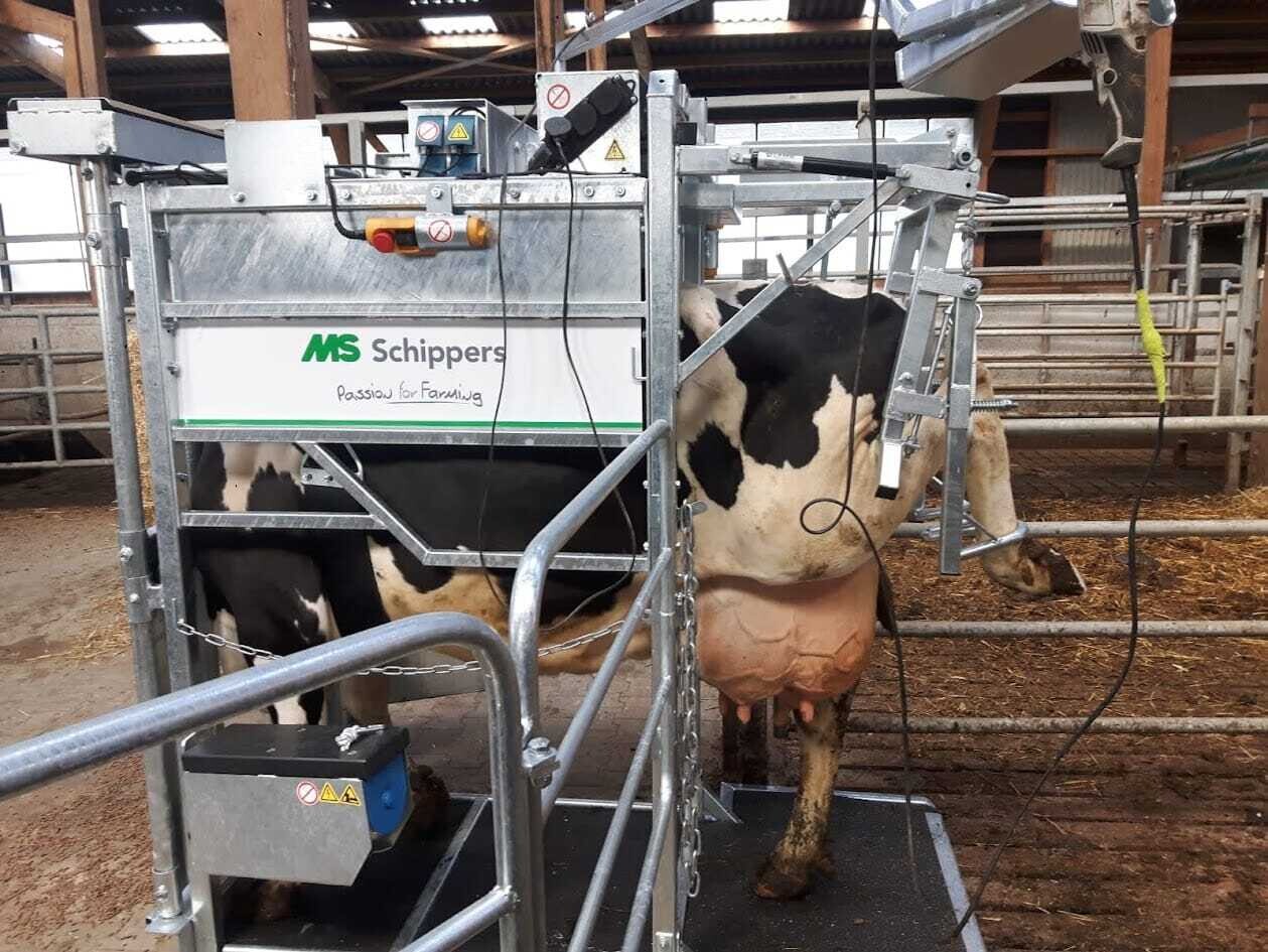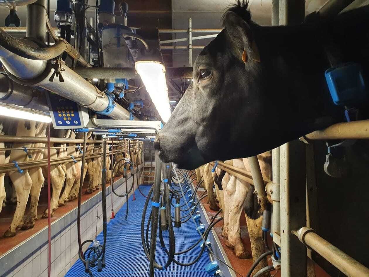 Gemolken wird zweimal täglich in einem Dairymaster Doppel-16-SwingOver Melkstand mit moderner technischer Ausstattung wie Einzeltiererkennung und Milchmengenmessung