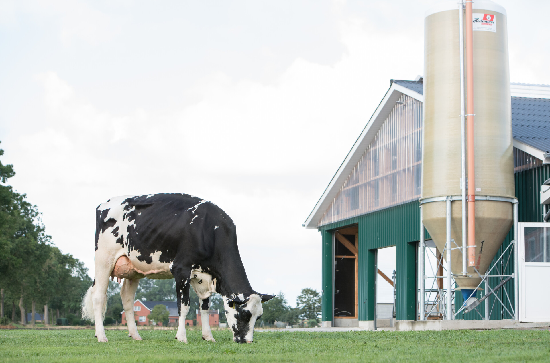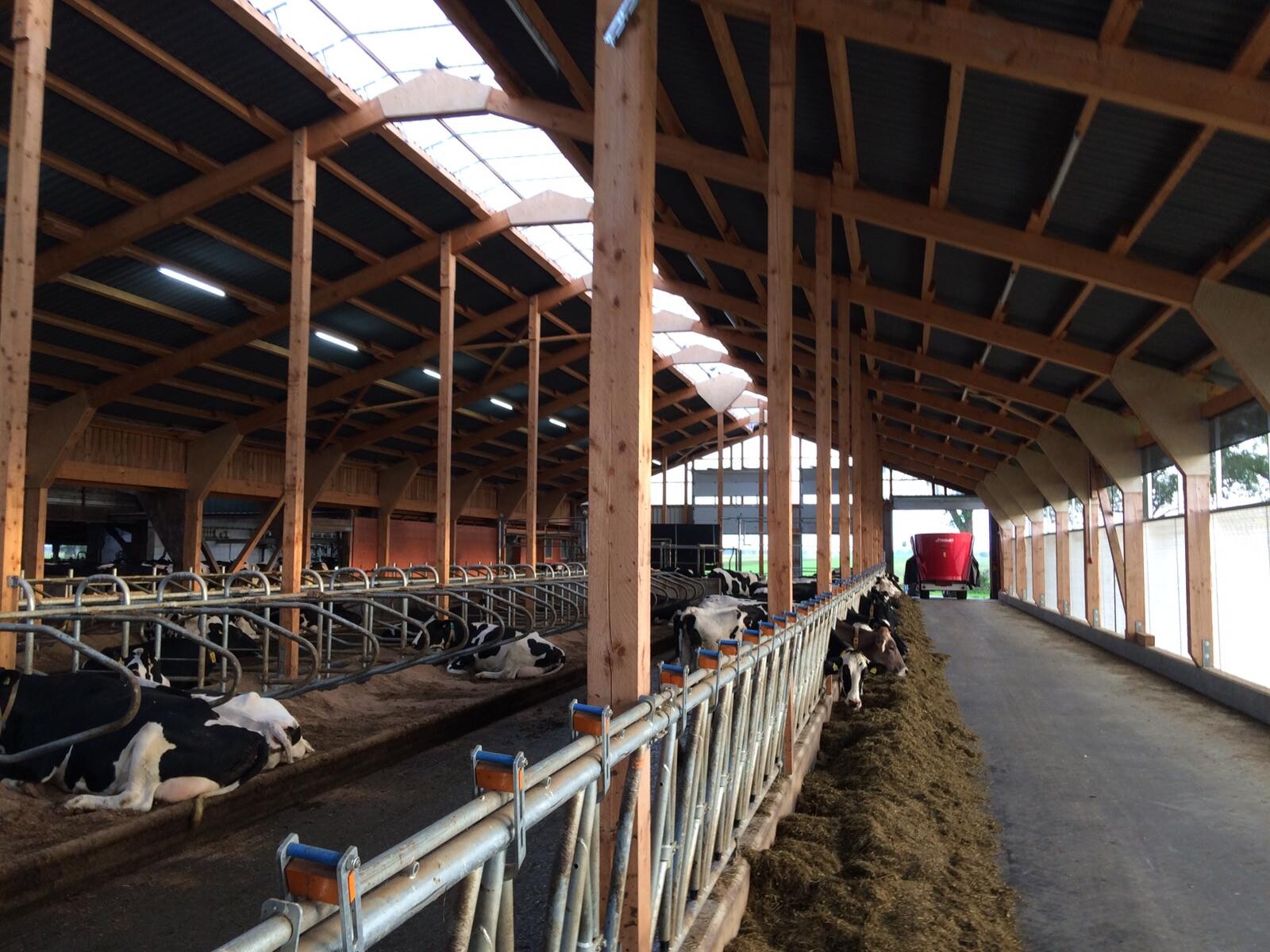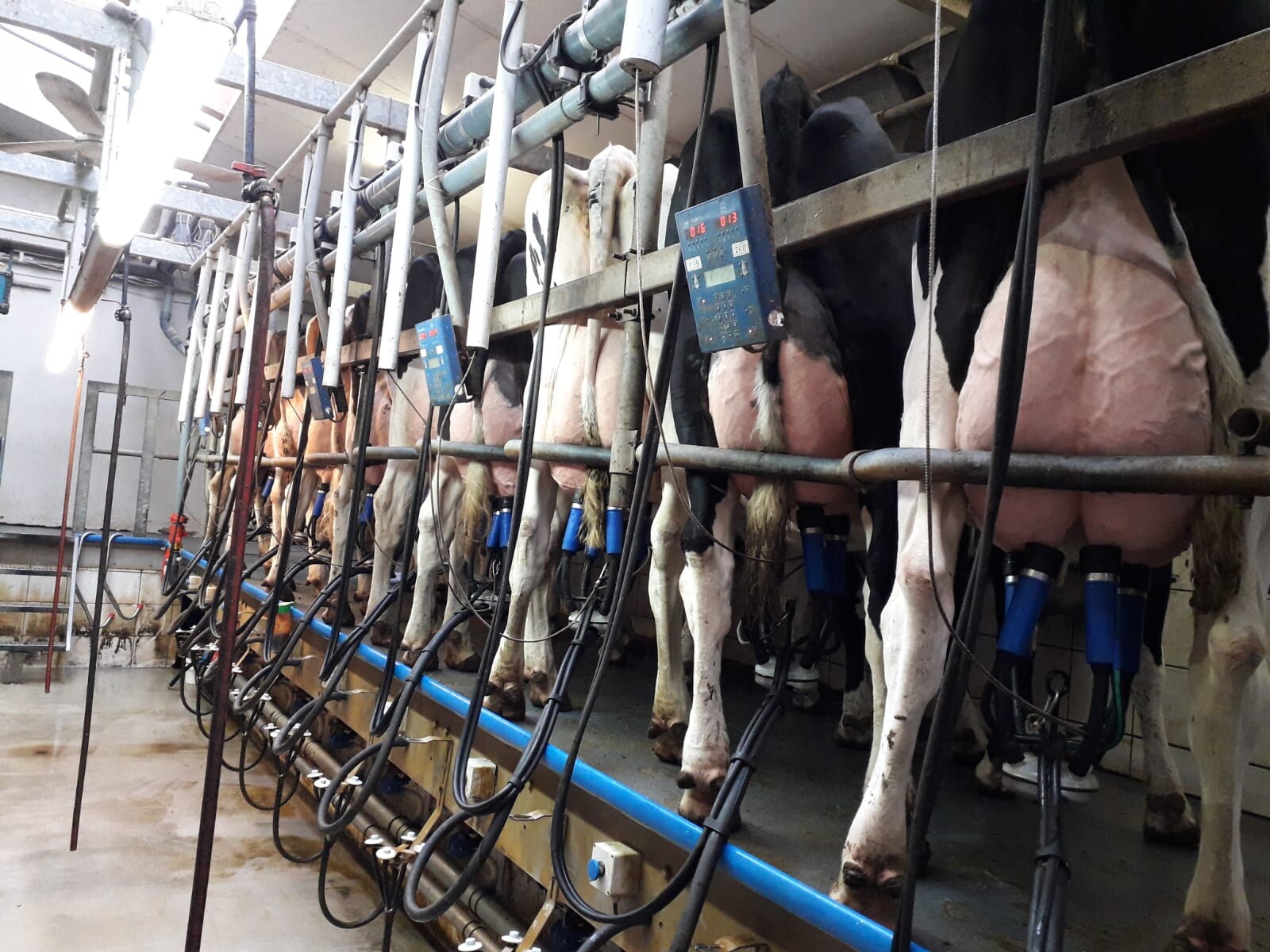 Die Leistung der Milchkühe beträgt durchschnittlich 10300kg/Kuh und sie werden in einer steilen Fischgräte 2x10 Plätze (Baujahr 2009) gemolken.