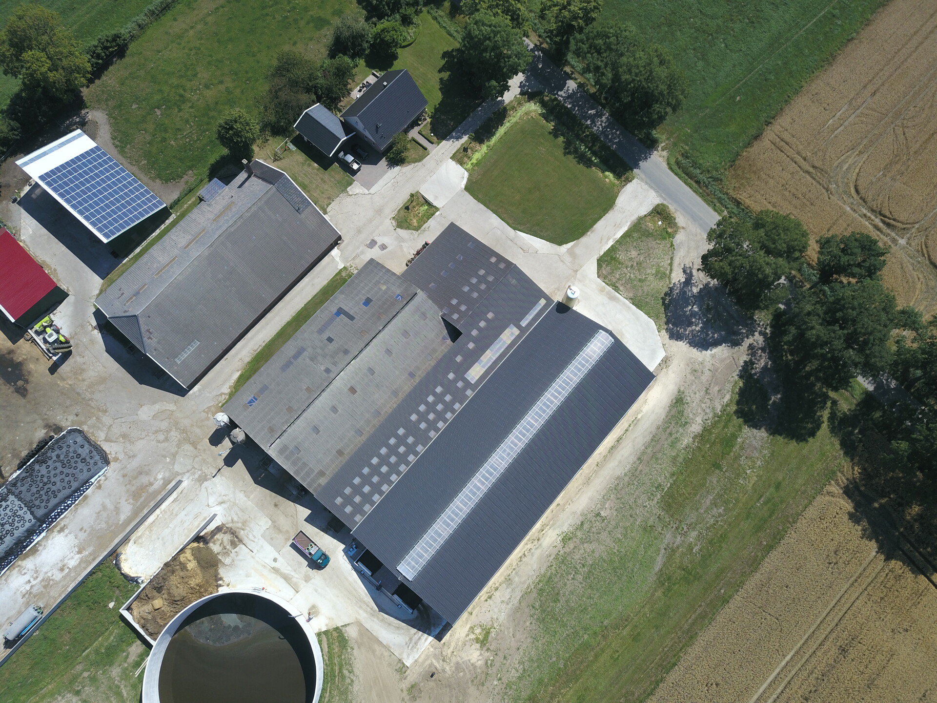 Die Außenwirtschaft führen wir größtenteils selbst durch. Dazu stehen drei Schlepper zur Verfügung (130-200 PS) sowie zahlreiche Maschinen und Gerätschaften wie: