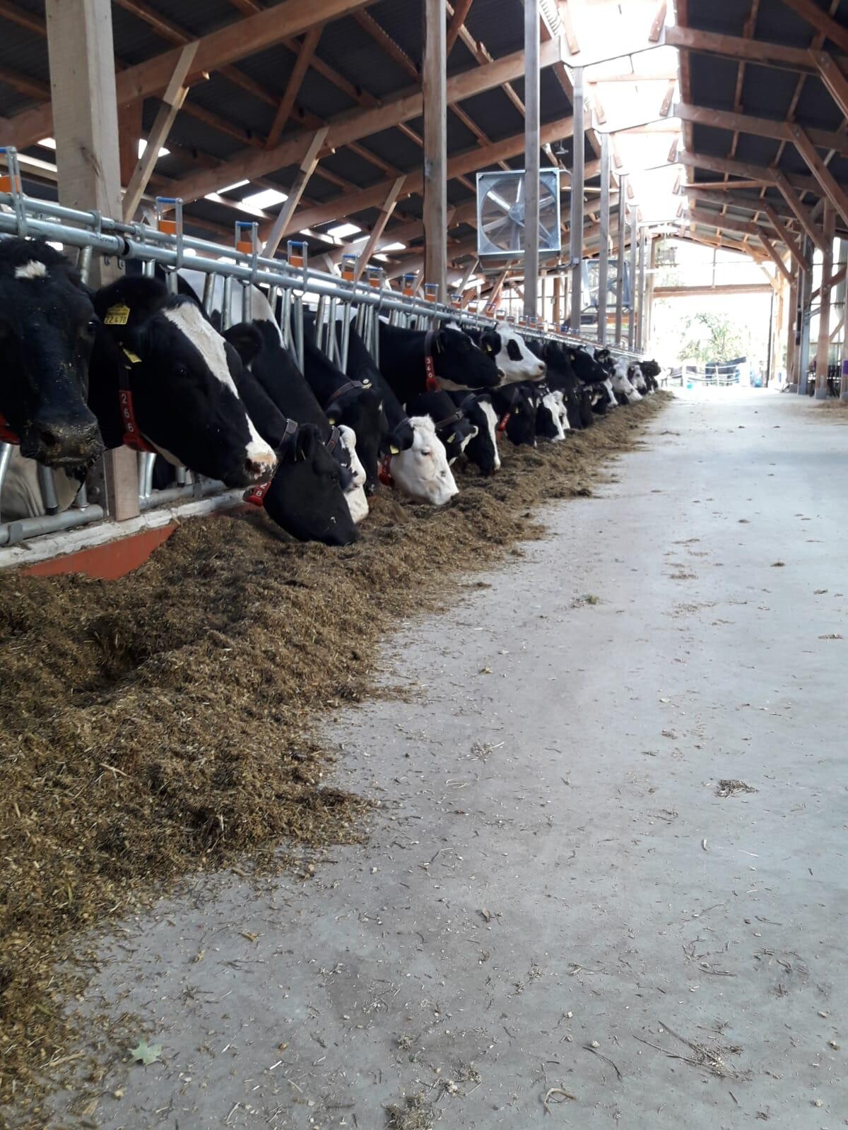 Bei uns werden die 200 Holstein Milchkühe an drei Melkrobotern gemolken.
