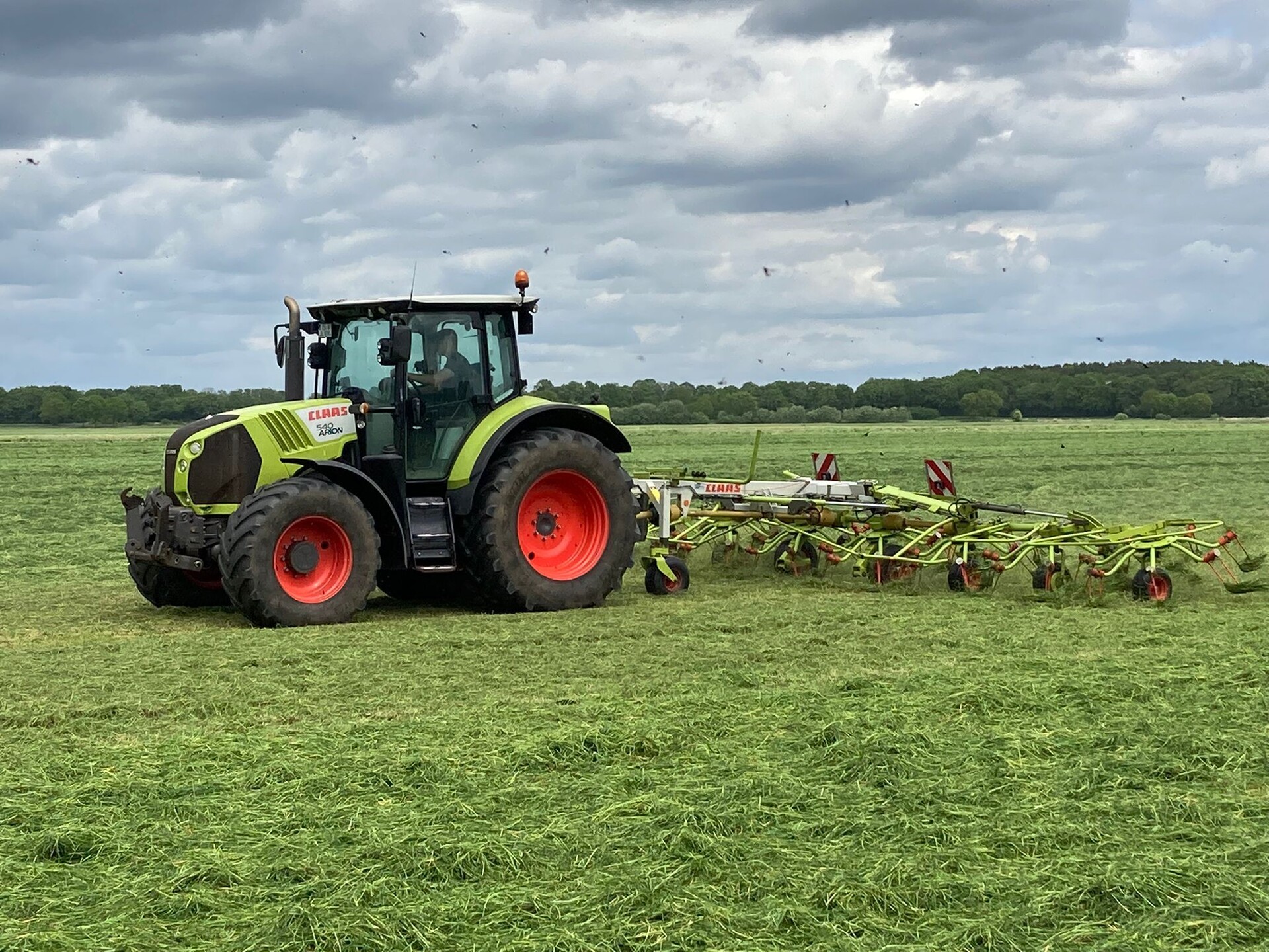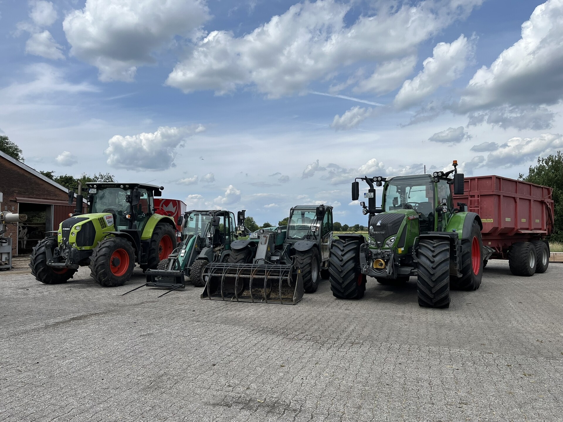 Wir wohnen im Niedermoorgebiet "Flaar", wo sich auch unsere Grünlandflächen befinden. Unser Ackerland liegt im Umkreis von 8km um den Betrieb und hat Moor-, Sand- und Lehmböden. Bis auf die Ernte, Pflanzenschutz und Flüssigdüngung übernehmen wir alle Arbeiten in der Außenwirtschaft selbst. Die Kombination von Milchvieh und Hähnchen ist eher selten, passt aber bei uns gut zusammen und wir arbeiten in beiden Betriebszweigen hoch effizient. So haben wir aktuell eine Milchleistung von fast 12.000kg Milch je Kuh und Jahr und fahren in der Hähnchenmast 7,5 Durchgänge im Jahr bei 41-42 Masttagen.