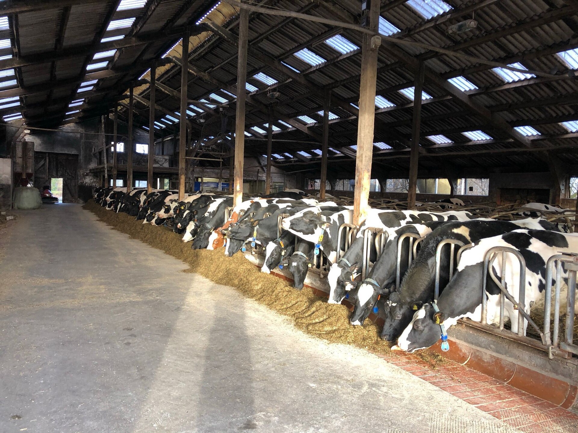 Die Fütterung erfolgt einmal täglich als Teil-TMR mit dem Futtermischwagen von Siloking und einem Kramer Teleskoplader. Das Melken der Kühe übernimmt ein Melkroboter der Marke DeLaval.