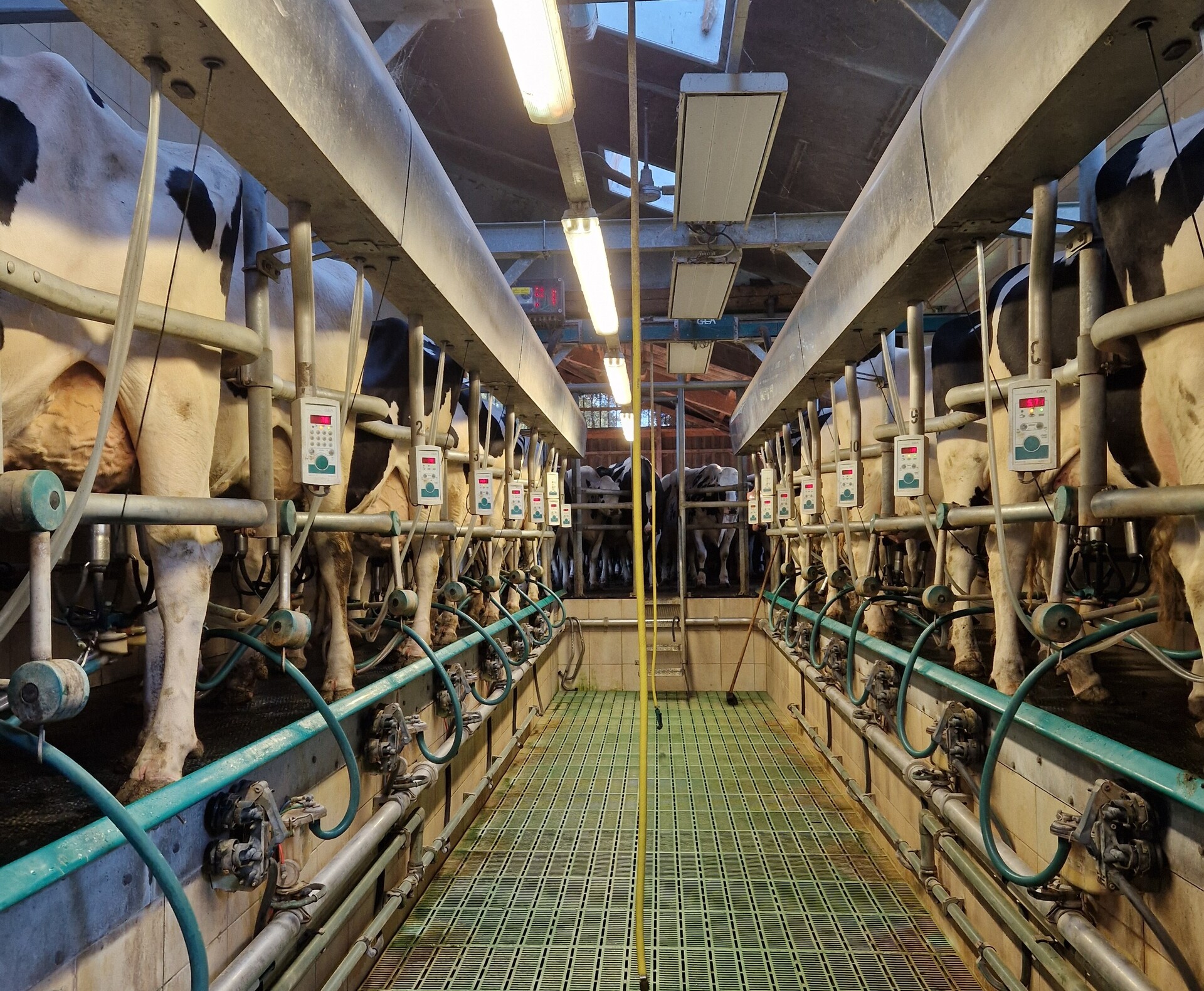 2x7 Fischgrätenmelkstand mit Ventilatoren und Heizsystem