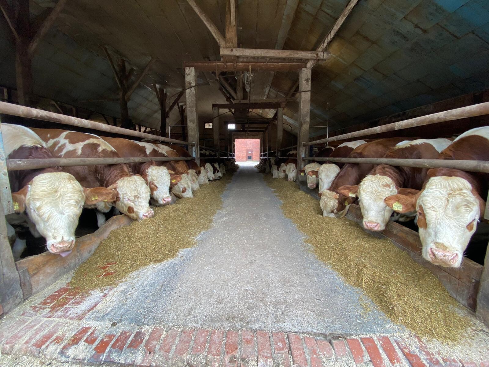 Auf zwei Pachtbetrieben mästen wir ca. 220 Bullen. Gefüttert wird mit Futtermischwagen.