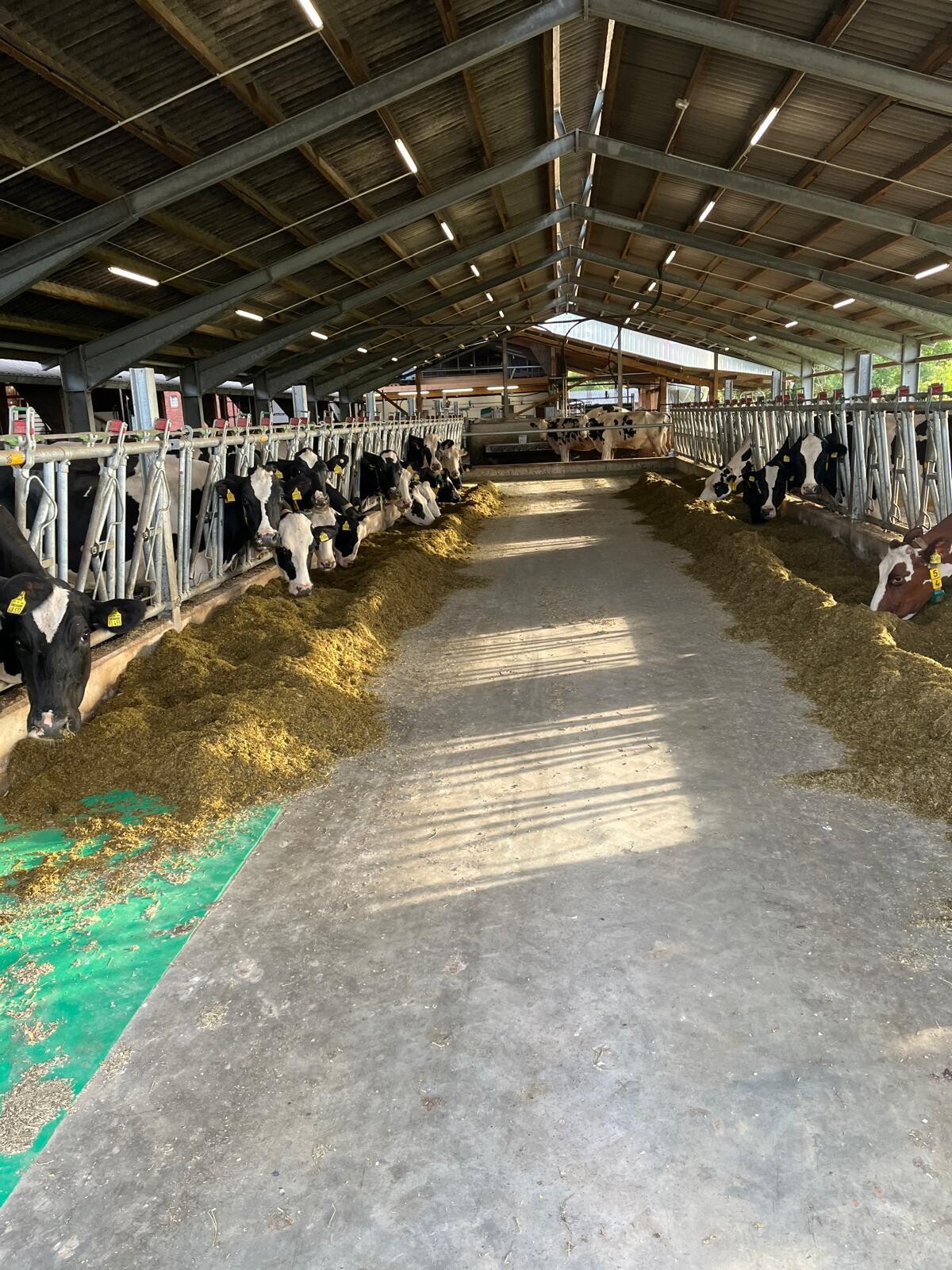 Wir sind ein familiengeführter Gemischtbetrieb in der südlichen Wesermarsch mit dem Schwerpunkt Weidemilcherzeugung. Auf unserem Hof halten wir 140 Milchühe inklusive weiblicher Nachzucht und mästen Bullen verschiedener Kreuzungsrassen. Aktivitätsmessung und Fresszeitüberwachung helfen uns beim Betriebsmanagement. Das Melken der Kühe wird von 2 GEA Melkrobotern übernommen. Gegenüber unseres Standortes befindet sich ein eigenständiger Geflügelaufzuchtbetrieb, der ebenfalls von uns bewirtschaftet wird. Hier können wir unseren Auszubildenden Einblicke in die Putenaufzucht geben. Zu unserer Gemeinschaft gehört zudem eine 250kw Biogasanlage, die haupsächlich mit Futter von beiden Betrieben versorgt wird.