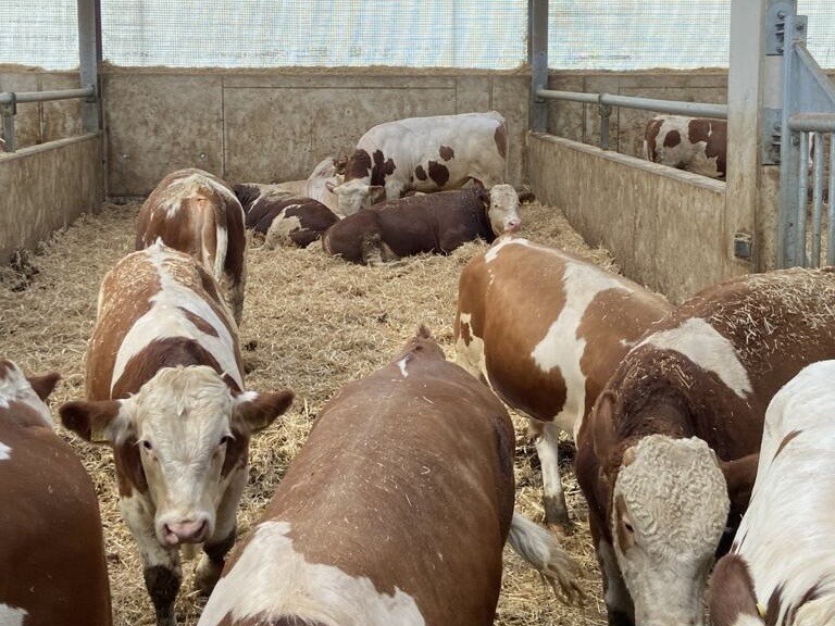 DIe Rindermast findet in modernen Ställen auf Stroh statt. Die Ställe mit insgesamt 600 Rindern wurden 2020 erbaut und sind mit neuster Technik ausgestattet. Alle Rinder werden nach Kriterien der Haltungsstufe 3 gehalten.