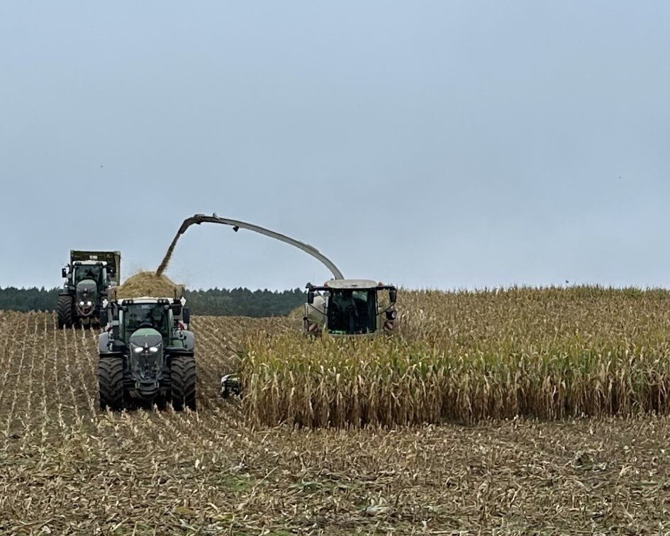 Bewirtschaftet werden ca 300 ha, auf denen Silomais und Getreide angebaut wird
