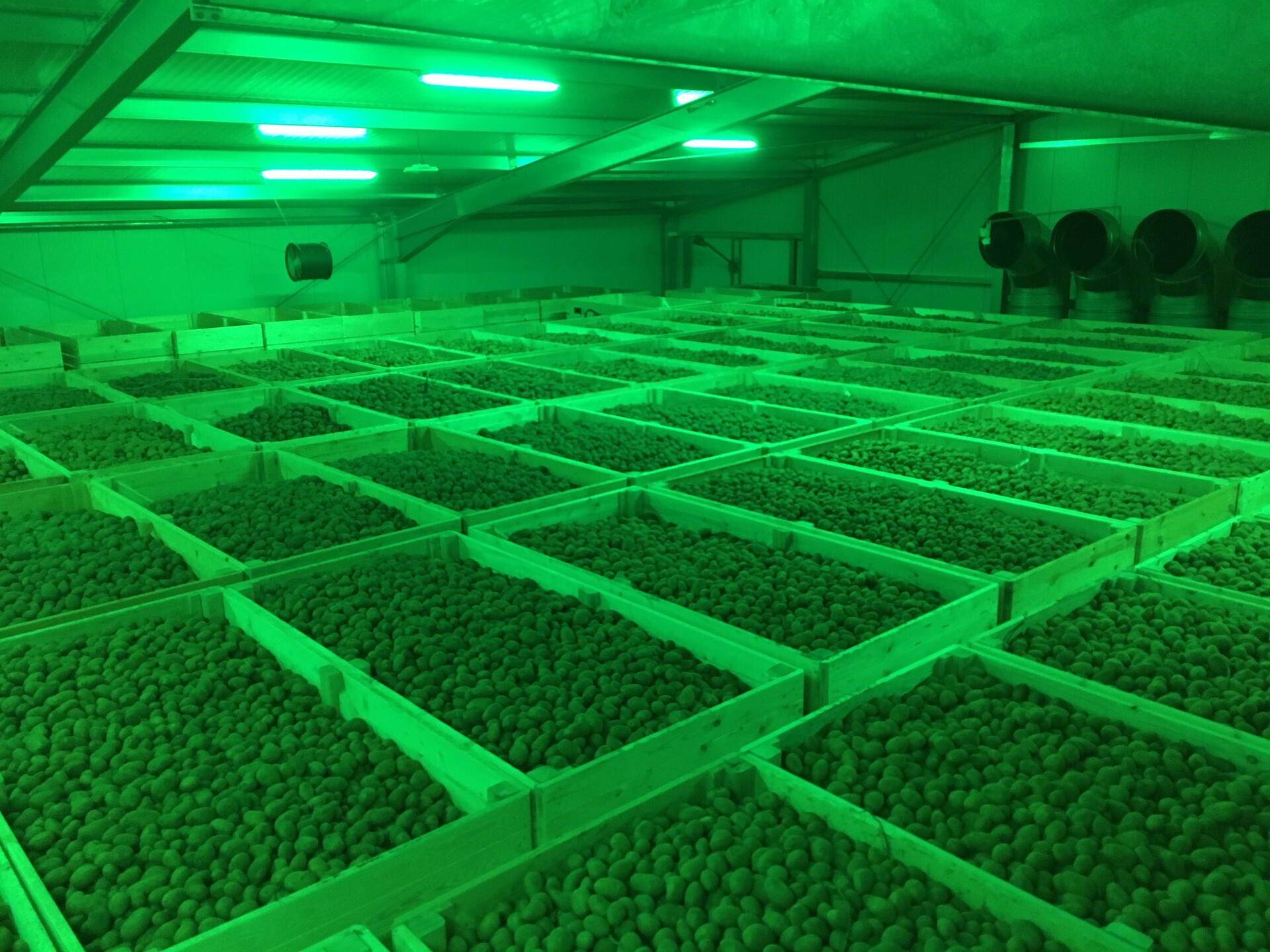 Lagerraum für Speise- und Saatkartoffeln (ca. 1100 t Kistenkühl- und 500 t Zwangsbelüftungskistenlager)