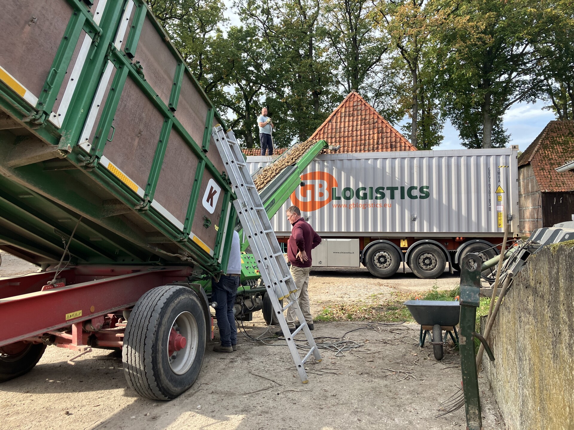 Transport: 2 18-Tonner, 1 16-Tonner, 2 8-Tonner, 2 Gabelstapler, 2 Fässer zum Gärresttransport, 3 Muldenkipper