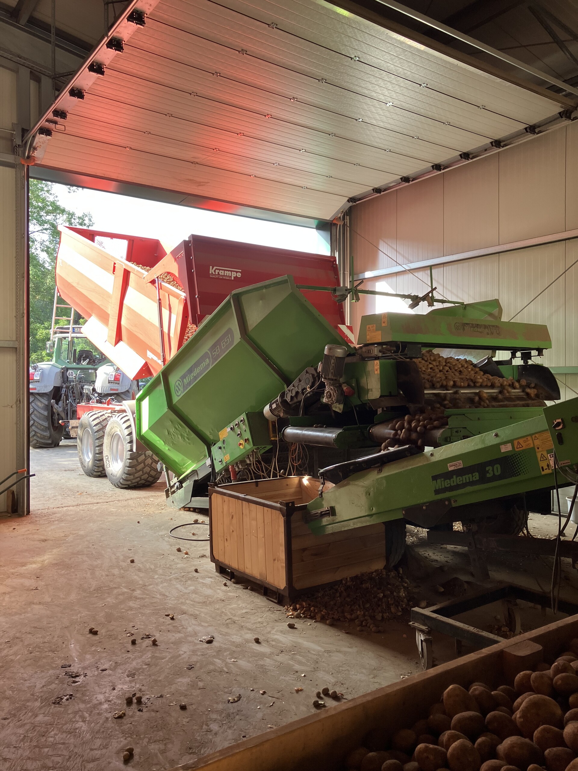 Kartoffeltechnik Innenwirtschaft: Annahmenbunker, Kistenfüller, Transportbänder, (kleine) optische Kartoffelsortieranlage, Schocksortierer