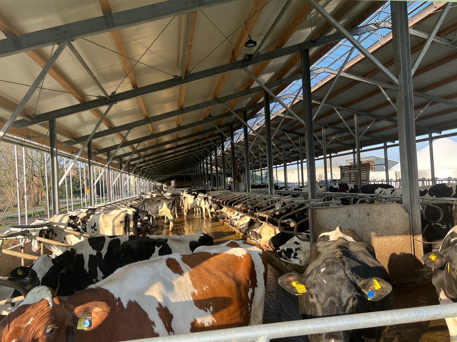 Unser Betrieb setzt auf moderne Technik in der Innenwirtschaft. Gemolken wird in einem Dairymaster Swing-Over Melkstand mit 2x16 Plätzen von 2012. Aufgerüstet ist dieser mit einer automatischen Kuherkennung und Milchmengenmessung. Das Füttern aller Tiere des Betriebs übernimmt unser Lely Vector Fütterungssystem, das 2024 in Betrieb gegangen ist und uns viel Flexibilität ermöglicht. Neben einem Boxenlaufstall für Jungvieh und Trockensteher aus dem Jahrf 1989 sind unsere Milchkühe 2024 in einen neu gebauten Boxenlaufstall eingezogen, in dem der Lely Collector Sammelroboter für Sauberkeit sorgt.
