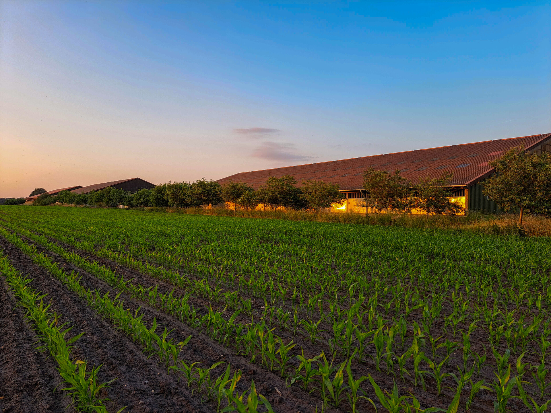 Wir sind ein familiengeführter Betrieb mit dem Schwerpunkt Bullenmast. 1987 wurde der Betrieb von dem jetzigen Betriebsleiter von Ochsen- auf Bullenmast umgestellt. Kurze Zeit später wurde der erste größere Stall mit Spaltenboden gebaut. 2004 wurde auf der neuen Außenstelle der erste von heute 3 Tretmistställen errichtet, die anderen folgten 2016 und 2021. Momentan füttern wir zweimal täglich 1500 Tiere, davon ungefähr 1100 in der Mittel- und Endmast. Die Vormast findet, zusammen mit der Kälberaufzucht, auf der alten Hofstelle im Dorf statt. Unser Betrieb ist mit den Tretmistställen Tierwohl Haltungsform 3 zertifiziert.