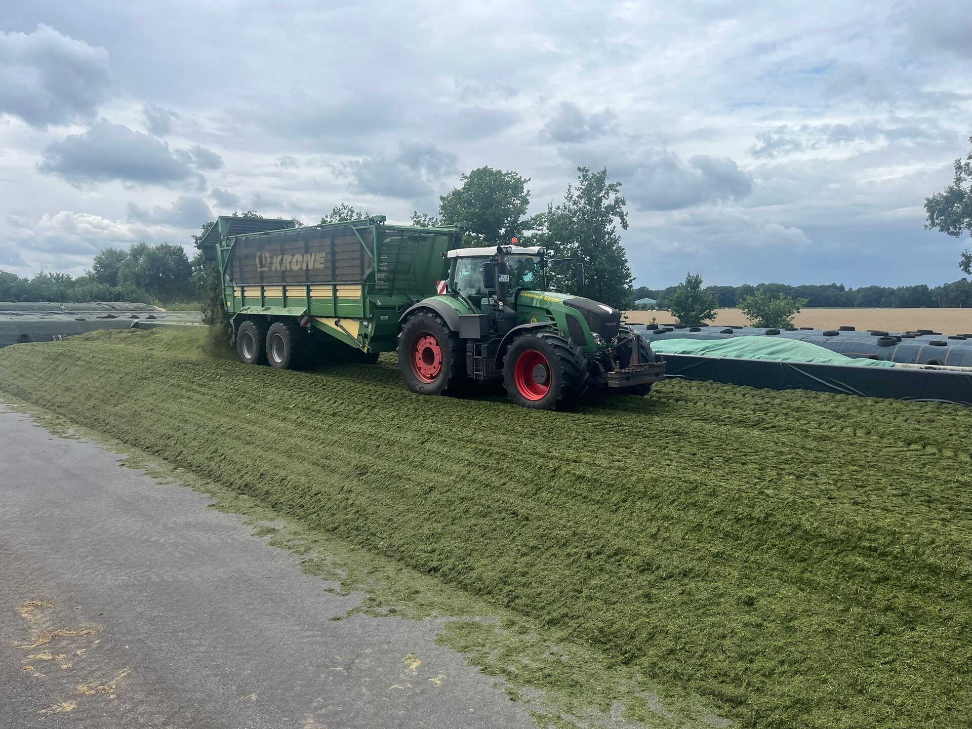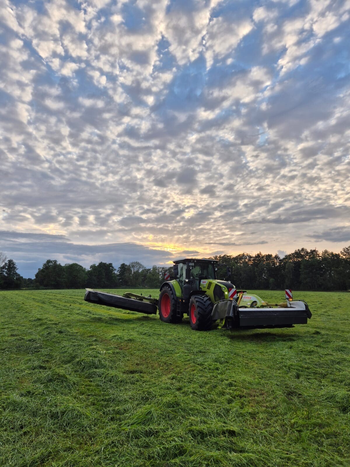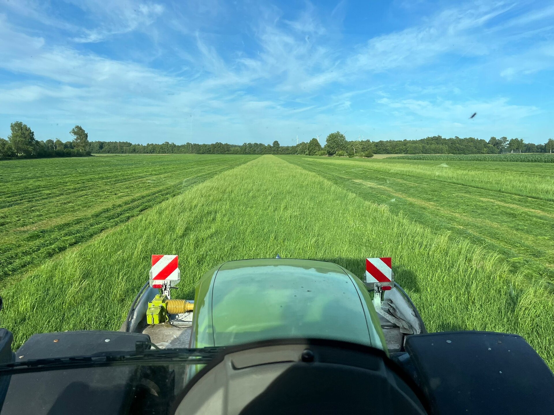 In der Aussenwirtschaft liegt der Schwerpunkt auf dem Futterbau. Hier wirst du in alle Arbeiten integriert inkl. Dünger streuen und im 3. Lehrjahr auch beim Ausbringen von Pflanzenschutzmitteln.