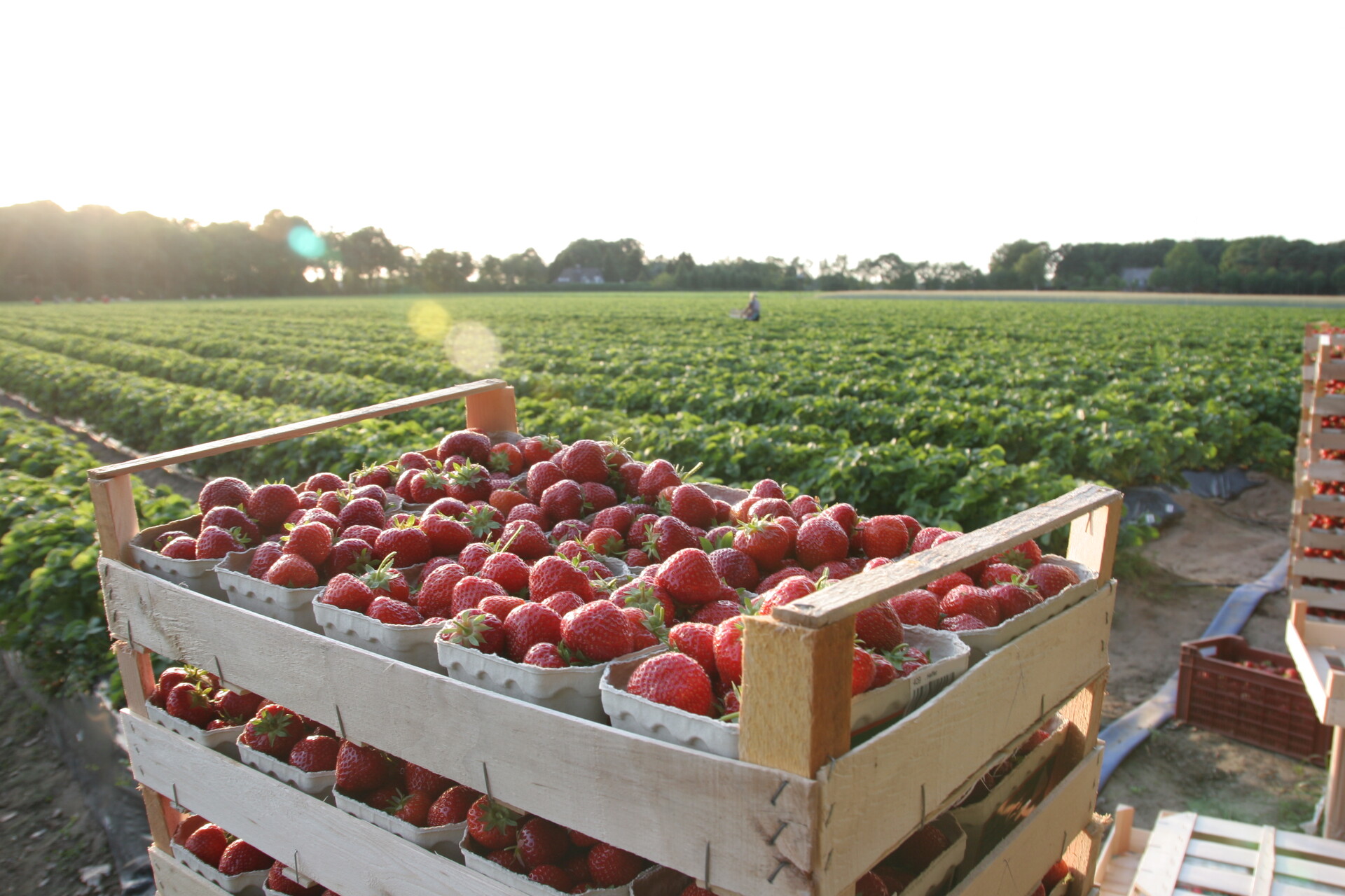 Die Ernte startet bei uns im April mit Spargel. Danach kommen die Erdbeeren und Himbeeren, ab Juni fangen wir mit Kirschen und Heidelbeeren an. Die Erntesaison der Erdbeeren geht inzwischen bis Anfang November.