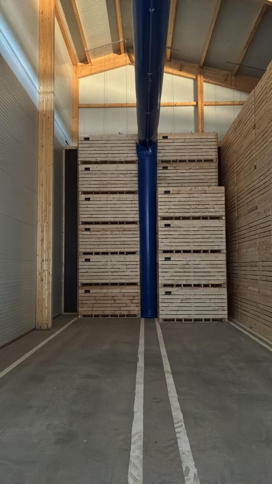 Zwiebellagerhalle 1400 to in Kisten mit Kühlung (BJ 2025), mit Grimme Technik und Linde Gabelstapler
