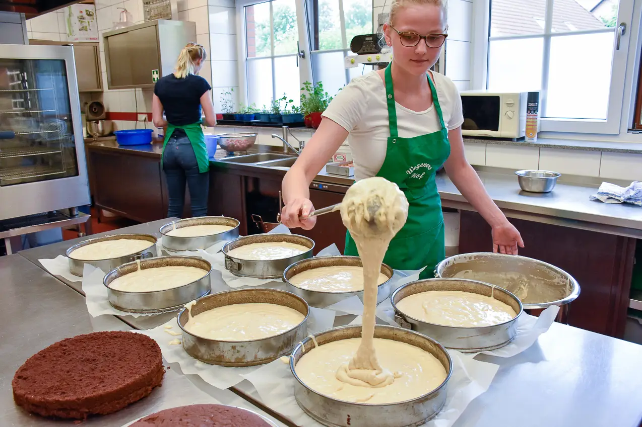 In der Ausbildung wirst du dich vor allem mit der Zubereitung verschiedenster Speisen und der Raum- und Wäschepflege beschäftigen. Hierzu gehört auch, Arbeitsabläufe sinnvoll zu organisieren, nachhaltig zu wirtschaften und Hygiene-Standards einzuhalten. Der Umgang mit Menschen, sprich die Kommunikation, der Service sowie die Kund*innen-Orientierung sind zudem wichtige Bausteine deiner Ausbildung.