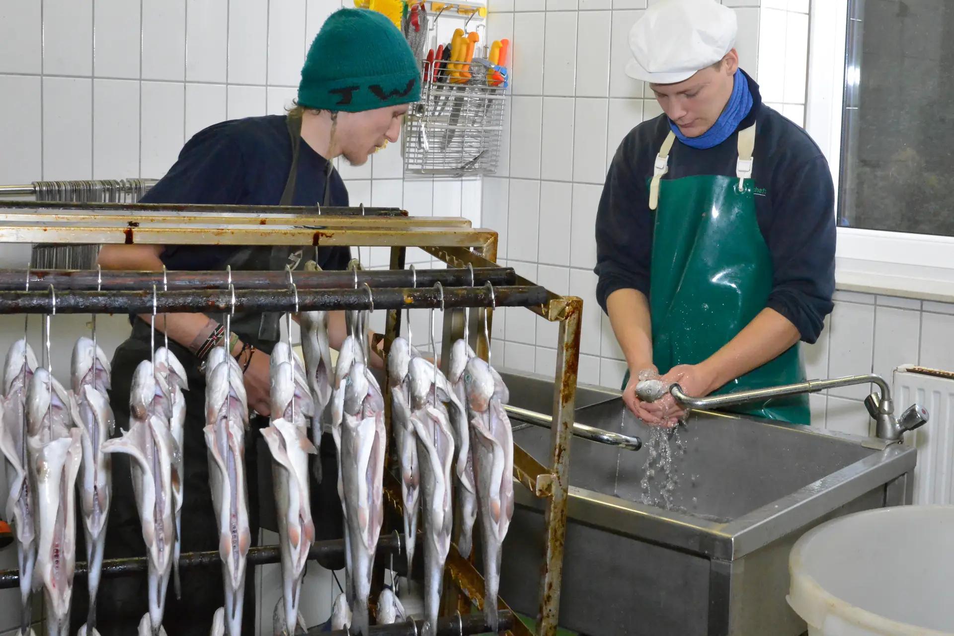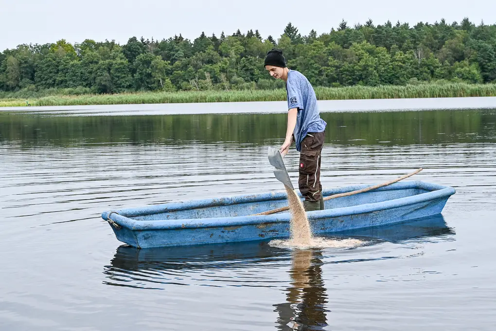 Fragen wie: „Wann müssen wir den Teich mit jungen Fischen besetzen?“, „Entwickelt sich der Fischbestand gut?“ und „Ist die Wasserqualität in der Anlage für die Fische optimal?“ gehören genauso zum Alltag wie z.B. das Verarbeiten der Fische, das Reparieren von Fangnetzten und der Kontakt zu Kund*innen.