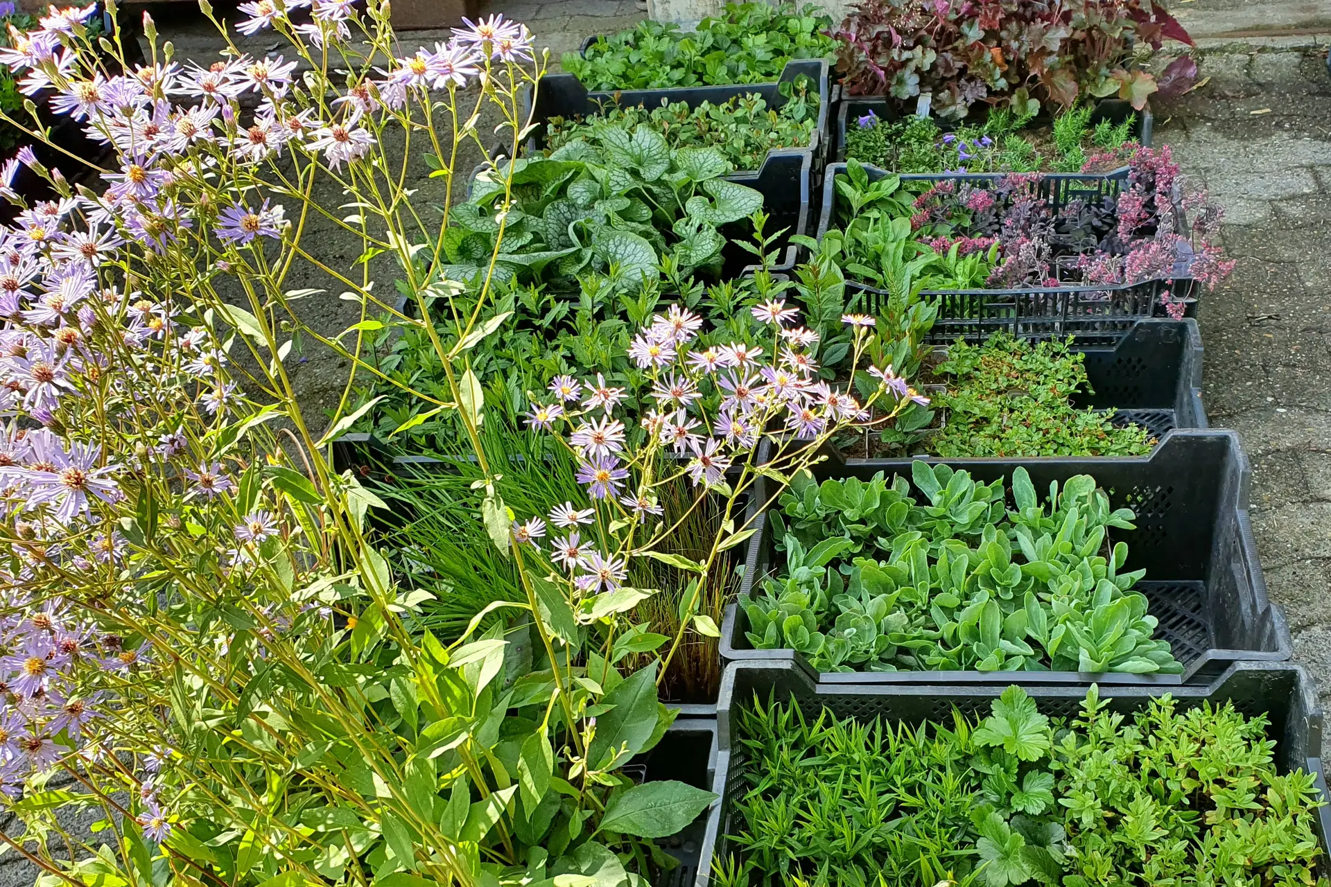 Sie arbeiten mit Gräsern und Farnen und mit einer großen Anzahl mehrjähriger, winterharter, nicht verholzender Pflanzen (Stauden).