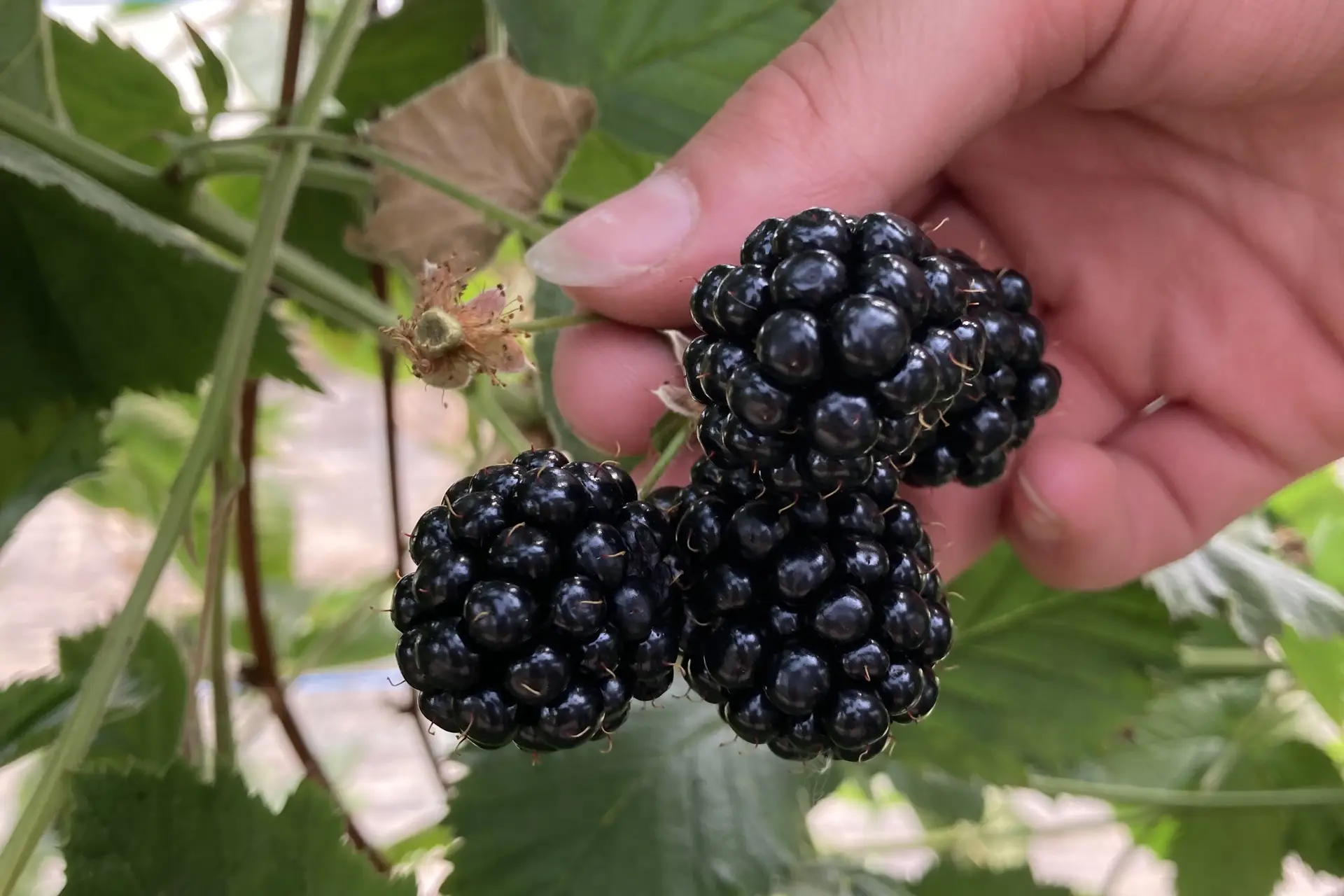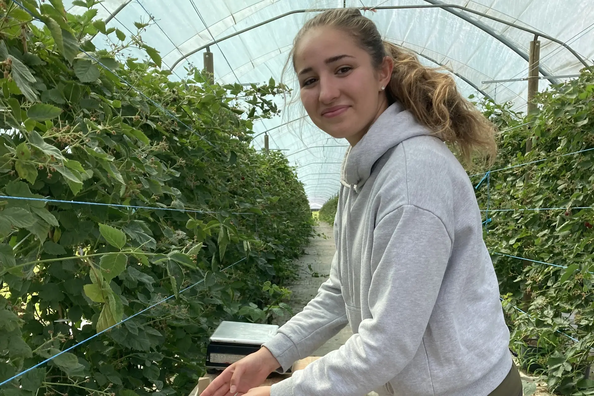 Dieses Mal lag die Ernte in den letzten Zügen. Die 19-Jährige Anna hat uns verschiedene Sorten Himbeeren, Brombeeren und Erdbeeren gezeigt, welche sie in 200g-Schalen abgewogen hat.